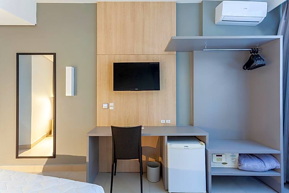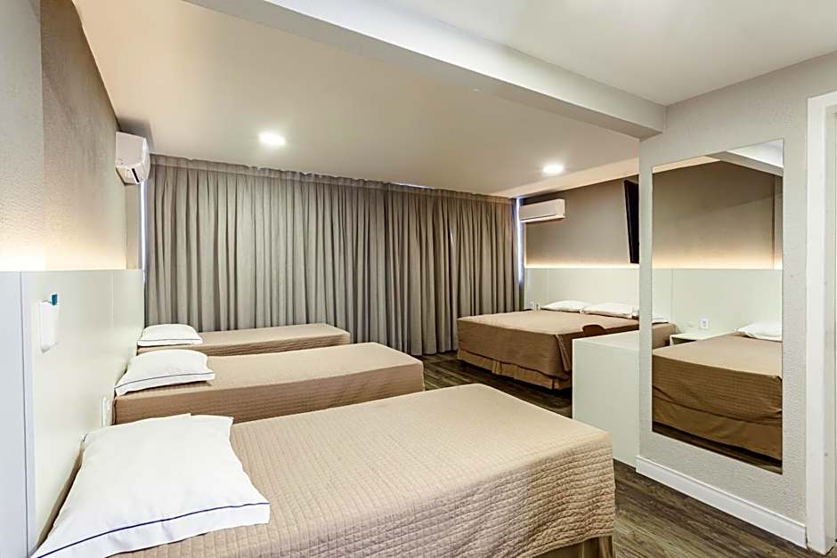 TRIPLO STANDARD SEM VISTA is 258 square feet and includes either a double bed 131-150 width or 2 single beds 80-130 width plus extra beds on demand, cable tv, hairdryer, and safe.